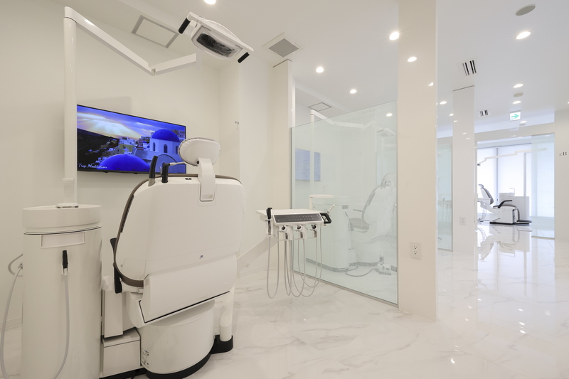 当フロアは、通常の診察フロアから完全に独立し、静寂とアロマに満たされています。これは、ホワイトニングの施術中に、外部の喧騒や治療音に邪魔されることなく、ご自身の「美」に集中していただくためです。